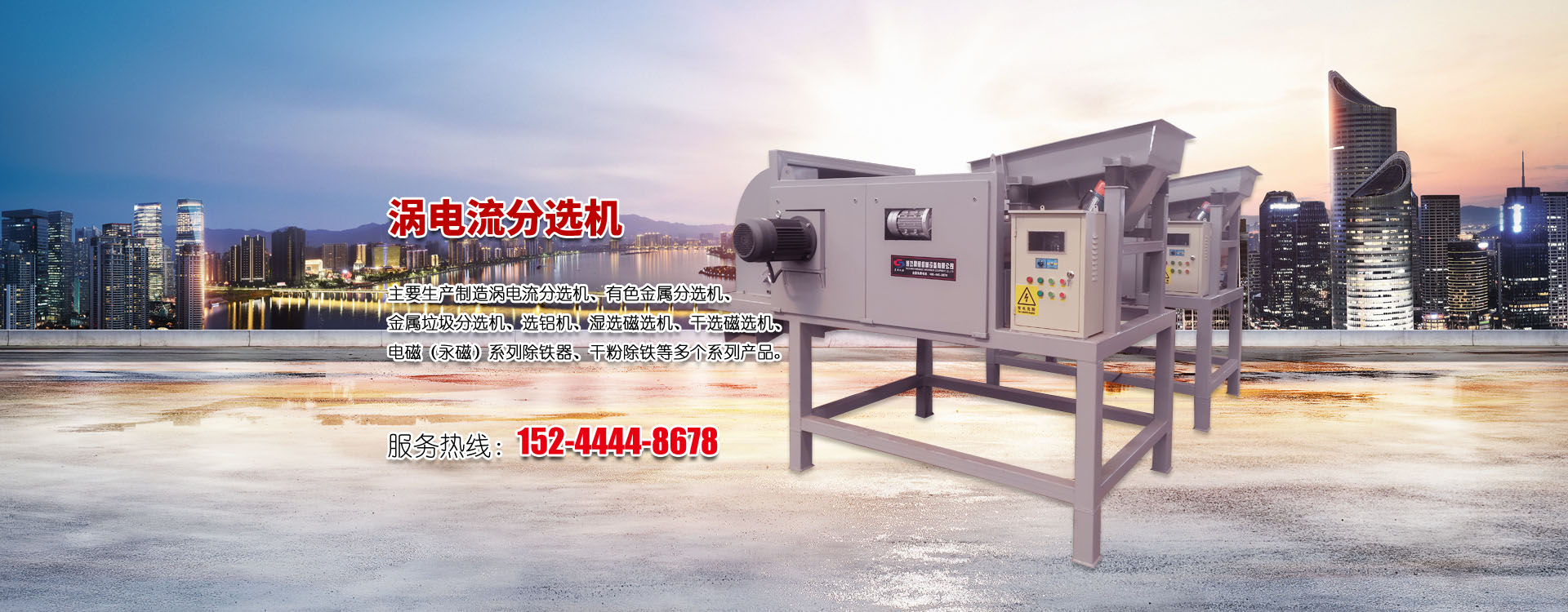 主要生產制造渦電流分選機、有色金屬分選機、金屬垃圾分選機、選鋁機、濕選磁選機、干選磁選機、電磁(永磁)系列除鐵器、干粉除鐵等多個系列產品。